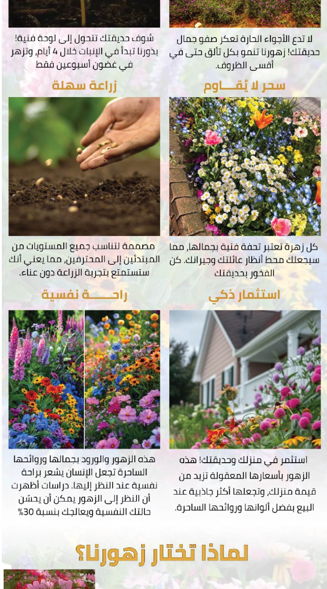 منتج جيد، بس يحتاج شوية صبر. لما تكون الزهور موجودة، كل الجيران يمدحون شكل الحديقة.