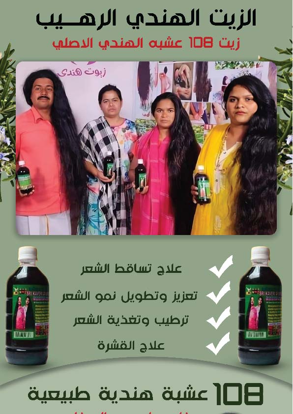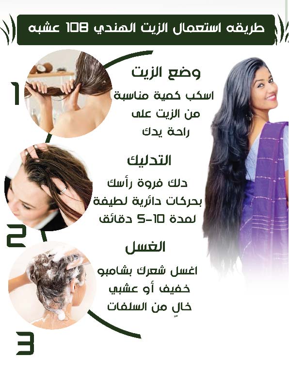 الزيت الهندي 108 عشبة … ودّع التساقط ورحّب بشعر أطول وأنعم ( ثلاثة قطع )
