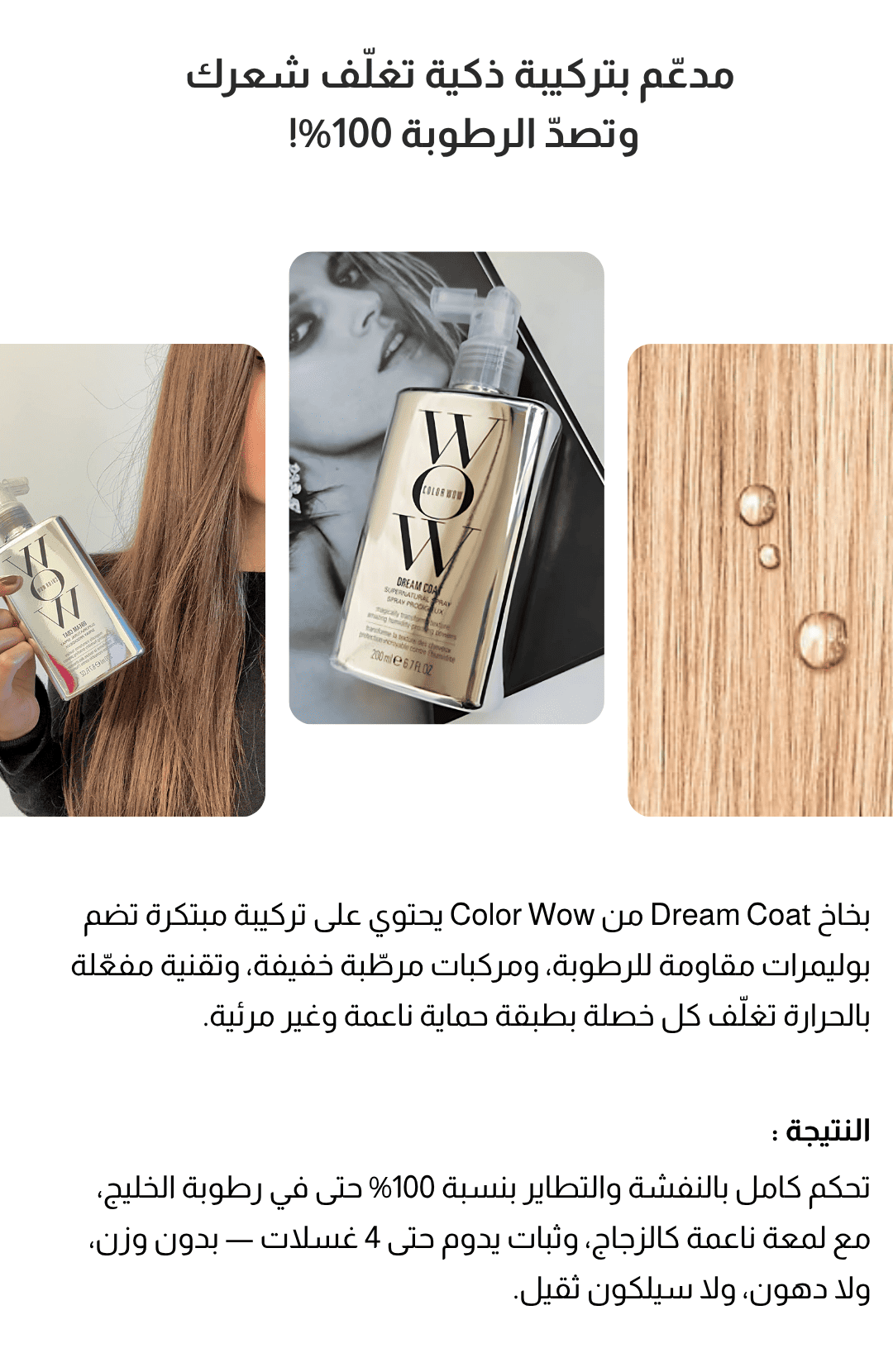 شعري صار مثالي، مقارنة بالمنتجات الثانية اللي جربتها. Color Wow فعلاً يدي نتيجة مبهرة، أنصح فيه للبنات.