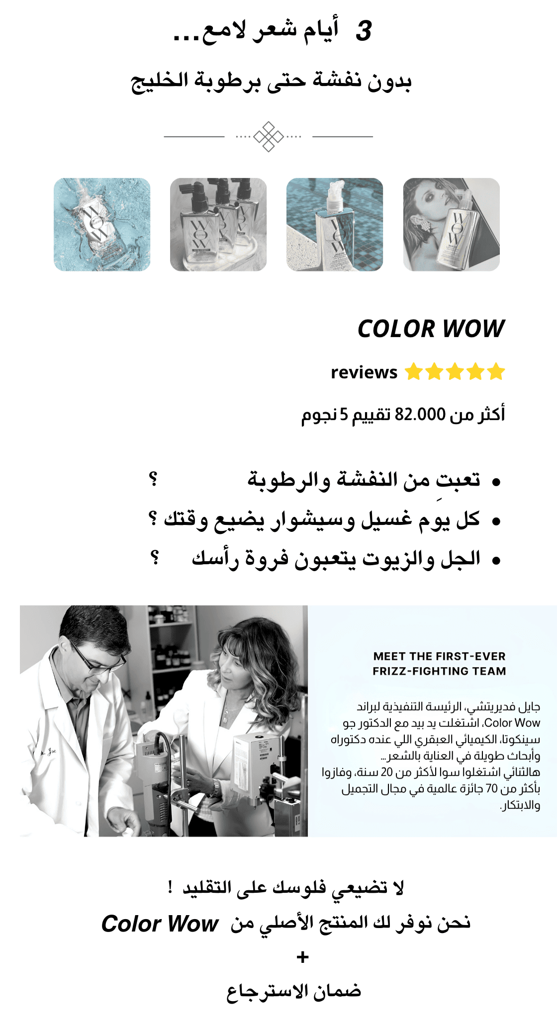 والله تجربة رائعة مع Color Wow، شعري صار يلمع ويخلي اللون ثابت بشكل مو طبيعي. أنصح فيه كل وحدة تحب صبغ شعرها وتحافظ على صحته!